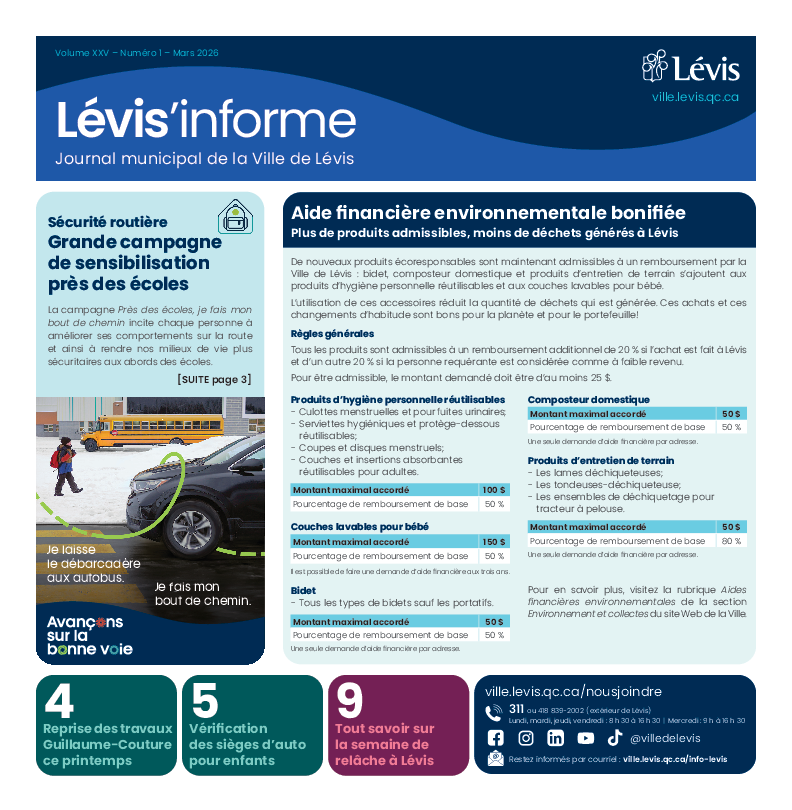 Le journal Lévis'informe est publié par la Ville de Lévis. À compter de 2026, il ne sera plus distribué par la poste et sera offert en format numérique. Quelques exemplaires imprimés seront aussi disponibles dans les édifices municipaux suivants.