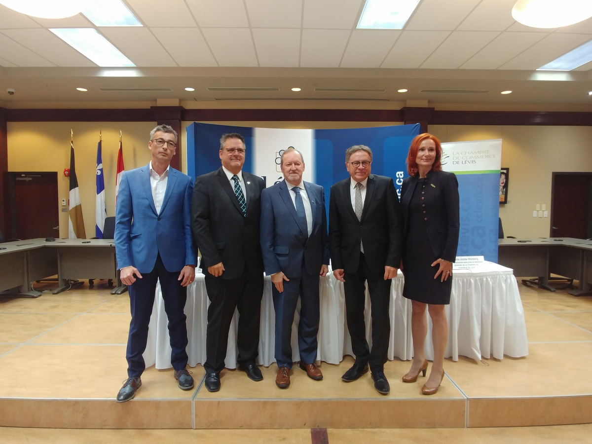 Monsieur Jacques Savard, membre du conseil d'administration d'Alliance Affaires Côte-de-Beaupré, monsieur Pierre Lefrançois, préfet de la MRC de La Côte-de-Beaupré et maire de l'Ange-Gardien, monsieur Clément Fillion, préfet de la MRC de Bellechasse et maire de Saint-Nazaire-de-Dorchester, monsieur Gilles Lehouillier, maire de Lévis, et madame Marie-Josée Morency, vice-présidente exécutive et directrice générale de la Chambre de commerce de Lévis.