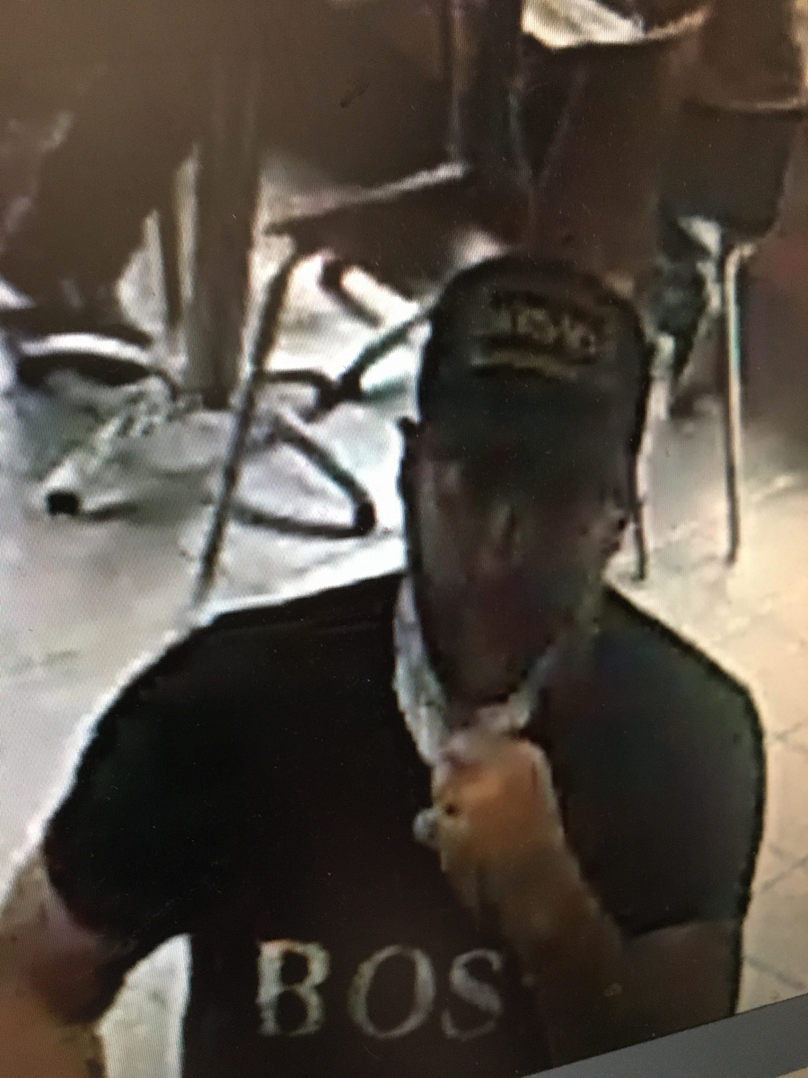 Lors du délit commis, le suspect portait un chandail noir avec l’inscription « BOSS » en blanc, une casquette noire avec « VERSACE » de couleur or écrit à l’avant.