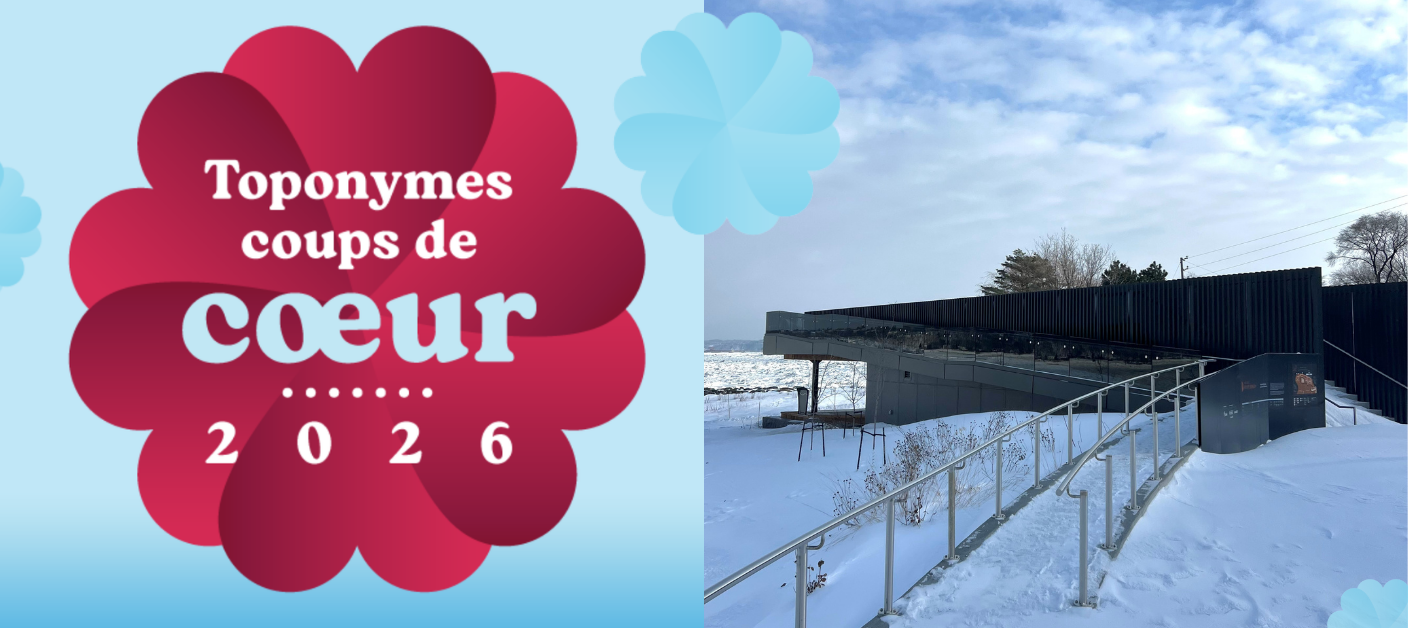 Le Belvédère du Voyage-Immobile, situé au parc de la Pointe-Benson, dans le secteur Saint-Romuald, a été sélectionné comme l’un des 12 toponymes coups de cœur par la Commission de toponymie du Québec.