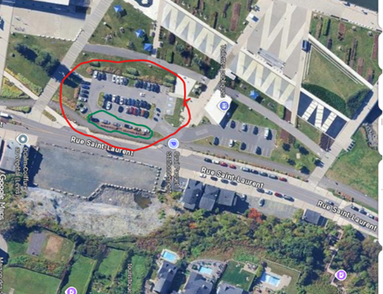 - Le stationnement ouest du Quai Paquet (zone rouge) sera complètement fermé pendant 2 à 3 jours, probablement au début de la semaine du 18 novembre. Les dates exactes seront confirmées.