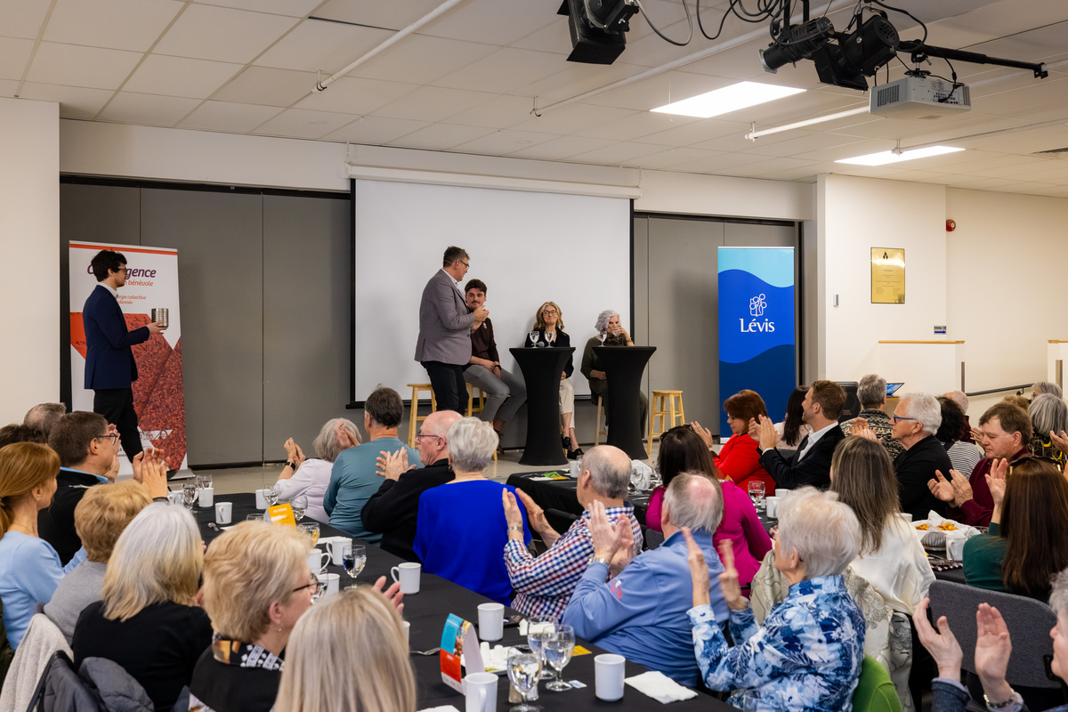 Dans le cadre de cette activité gratuite, près de 660 bénévoles issus de différents organismes de Lévis ont eu l’occasion de partager un brunch savoureux en compagnie de Marc Durand, figure reconnue pour sa vaste expérience dans le milieu des sports olympiques. Placée sous le thème « Je m’implique à Lévis : une victoire collective! », l’activité comprenait également une conférence inspirante animée par des athlètes olympiques en patinage de vitesse. Le dimanche 12 avril, Laurent Dubreuil était présent, accompagné de sa mère, Ariane Loignon. Puis, le samedi 18 avril, Cédrick Brunet a pris part à l’événement en compagnie de sa mère, Brigitte Gauthier, ainsi que de sa grand-mère, Carole Gauthier.